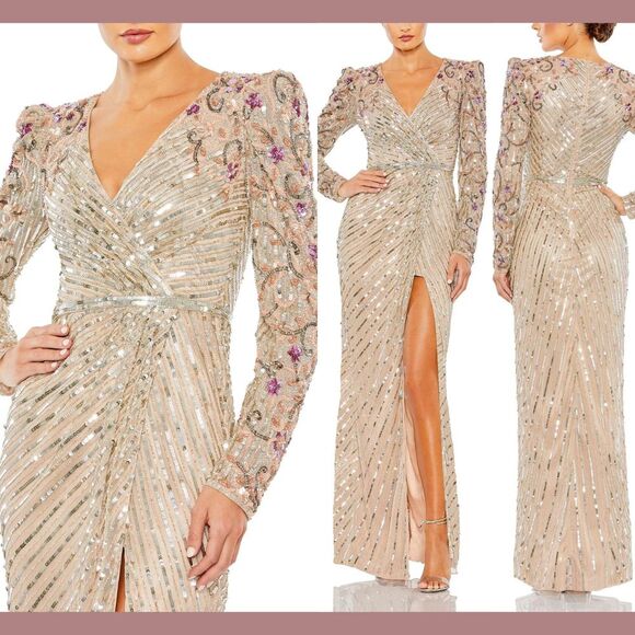 | Product Features | NWT $698 Mac Duggal [ 8 ] 5628 Long Sleeve Embellished Puff Sleeve Gown #S1254* Mac Duggal* Fully lined through bodice and skirt; sheer unlined sleeves * V-neckline * Beaded illusion long sleeves* Faux wrap bodice * Allover hand-stitched sequin detailing * Beaded waist detail and shoulder and sleeve embellishments * Concealed back zipper,High slit *Available in Nude Multi* Style #5628 * $698_____________________________________________________________________📌Offers are welcomed! 🛍Quick Ship 📦 📌Check out my closet for other items📌 New to ? Enjoy $10 off your first purchase when joining with the invite code: REVIVETHERACK____________________________________________________________________Tags: MOB MOG SIL, black tie, engagement, gala, wedding guest, bridal, mother of the bride groom, maid of honor, bridesmaids, cocktail, pageant, Quinceañera, formal wear, prom, homecoming | ||